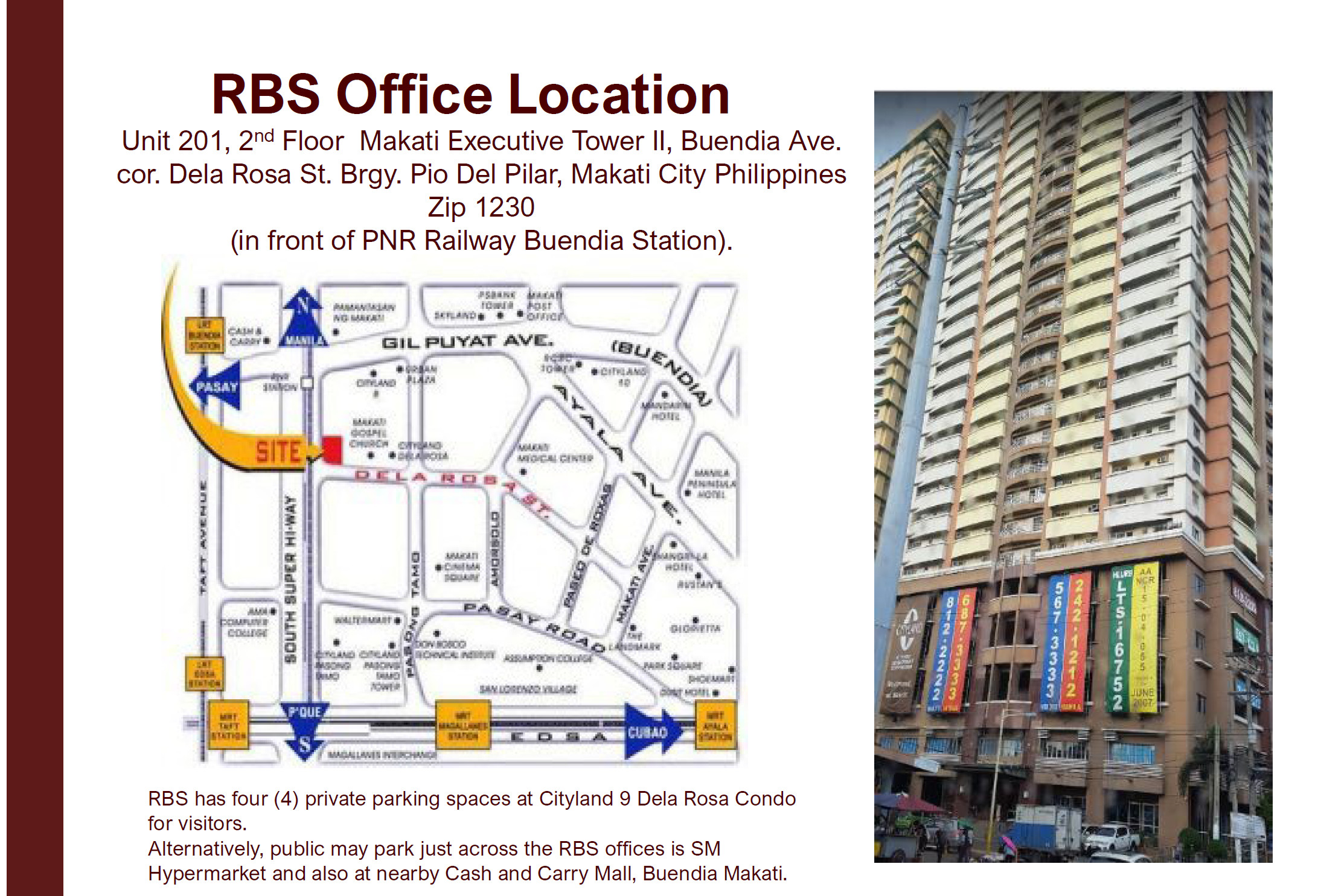 Offices : Unit 3603, 36th Floor, Makati Executive Tower 2, , cor Osmena & Gil Puyat (Buendia) Ave, Makati City , POSTAL CODE: 1230 Metro Manila, Philippines